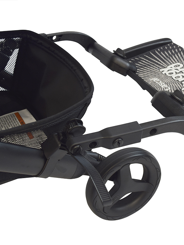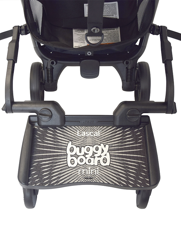 Please note, this website and product imagery is designed to show you the wide variety of applications and flexibility of the BuggyBoard on a range of pushchair models. It is not exhaustive and is regularly updated. The BuggyBoard has been designed with functionality in mind, so our illustrative examples are intended to show you that the BuggyBoard can be mounted successfully onto almost every pushchair model. It is important that any child using the BuggyBoard has enough space to stand comfortably. However, due to the number of combinations possible across pushchair brands (regarding positioning of carrycots, whether seats are forward/rear facing, the ability of the pushchair handle to slide out, accessories you may have attached etc.) we are unable to illustrate everything. Only you can recognise if your child has enough space to stand comfortably. Similarly, if you use a BuggyBoard Saddle, the seat accessory designed for use with the BuggyBoard Maxi, you need to be sure that your child has adequate space to sit/stand comfortably. They should always sit rear facing. Before each use, please show your child where they should hold onto the pushchair or Saddle to avoid any fingertraps that may be accessible at the back of your pushchair.