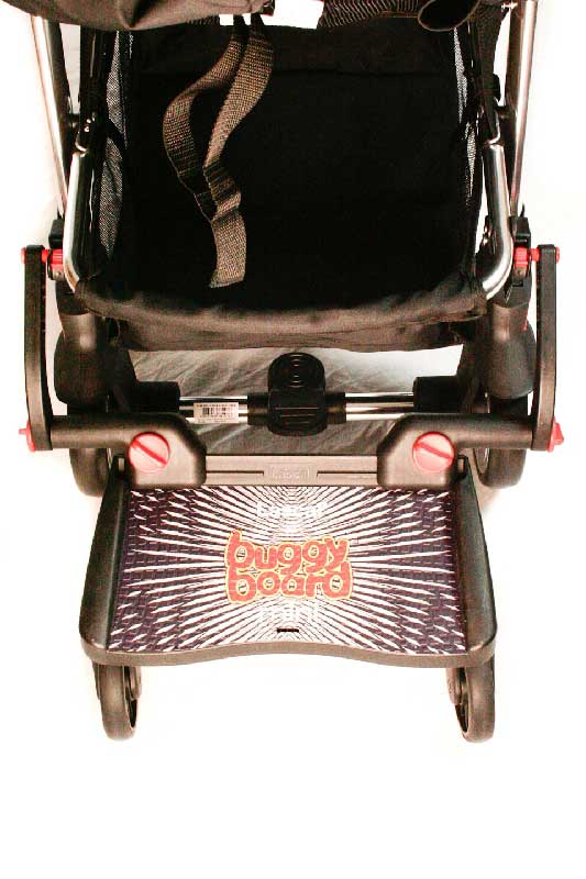 Bitte beachten Sie, dass diese Website- und Produktbilder die vielfältigen Einsatzmöglichkeiten und die Flexibilität des BuggyBoards für eine Reihe von Kinderwagenmodellen zeigen. Es erhebt keinen Anspruch auf Vollständigkeit und wird regelmäßig aktualisiert. Das BuggyBoard wurde im Hinblick auf eine große Funktionalität entwickelt, daher zeigen unsere illustrativen Beispiele, dass das BuggyBoard an fast jedem Kinderwagenmodell erfolgreich montiert werden kann. Es ist wichtig, dass jedes Kind, welches das BuggyBoard verwendet, genügend Platz hat, um bequem stehen zu können. Aufgrund der Anzahl der Kombinationen, die für verschiedene Kinderwagenmodelle möglich sind (hinsichtlich der Positionierung der Babytragetaschen, der Aufsätze nach vorn / hinten gerichtet, der Möglichkeit, den Kinderwagengriff herauszuschieben und umzuklappen, eventuell angebrachtes Zubehör usw.), können wir nicht alle unterschiedlichen Möglichkeiten zeigen. Nur Sie können erkennen, ob Ihr Kind genug Platz hat, um bequem zu stehen. Wenn Sie den BuggyBoard Sattel verwenden, das für die Verwendung mit dem BuggyBoard Maxi vorgesehen ist, müssen Sie sicherstellen, dass Ihr Kind ausreichend Platz hat, um bequem sitzen / stehen zu können. Die Kinder sollten immer nach hinten blickend sitzen. Zeigen Sie Ihrem Kind vor jedem Gebrauch, wo es sich am Kinderwagen oder am Sattel festhalten soll, um zu vermeiden, dass Ihr Kind sich die Finger klemmen kann.