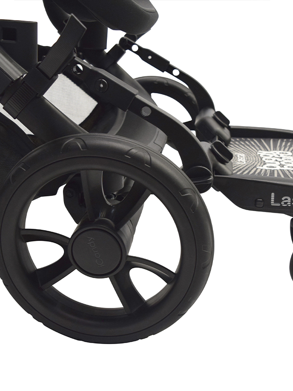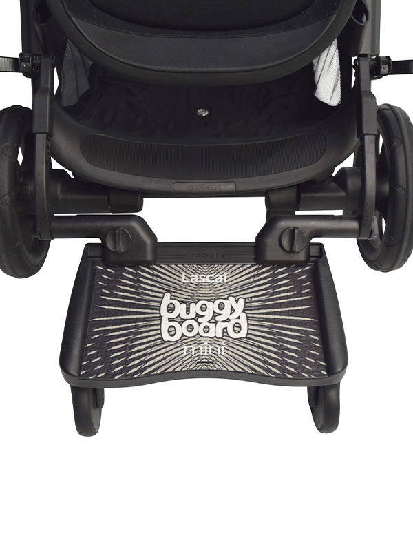 Please note, this website and product imagery is designed to show you the wide variety of applications and flexibility of the BuggyBoard on a range of pushchair models. It is not exhaustive and is regularly updated. The BuggyBoard has been designed with functionality in mind, so our illustrative examples are intended to show you that the BuggyBoard can be mounted successfully onto almost every pushchair model. It is important that any child using the BuggyBoard has enough space to stand comfortably. However, due to the number of combinations possible across pushchair brands (regarding positioning of carrycots, whether seats are forward/rear facing, the ability of the pushchair handle to slide out, accessories you may have attached etc.) we are unable to illustrate everything. Only you can recognise if your child has enough space to stand comfortably. Similarly, if you use a BuggyBoard Saddle, the seat accessory designed for use with the BuggyBoard Maxi, you need to be sure that your child has adequate space to sit/stand comfortably. They should always sit rear facing. Before each use, please show your child where they should hold onto the pushchair or Saddle to avoid any fingertraps that may be accessible at the back of your pushchair.