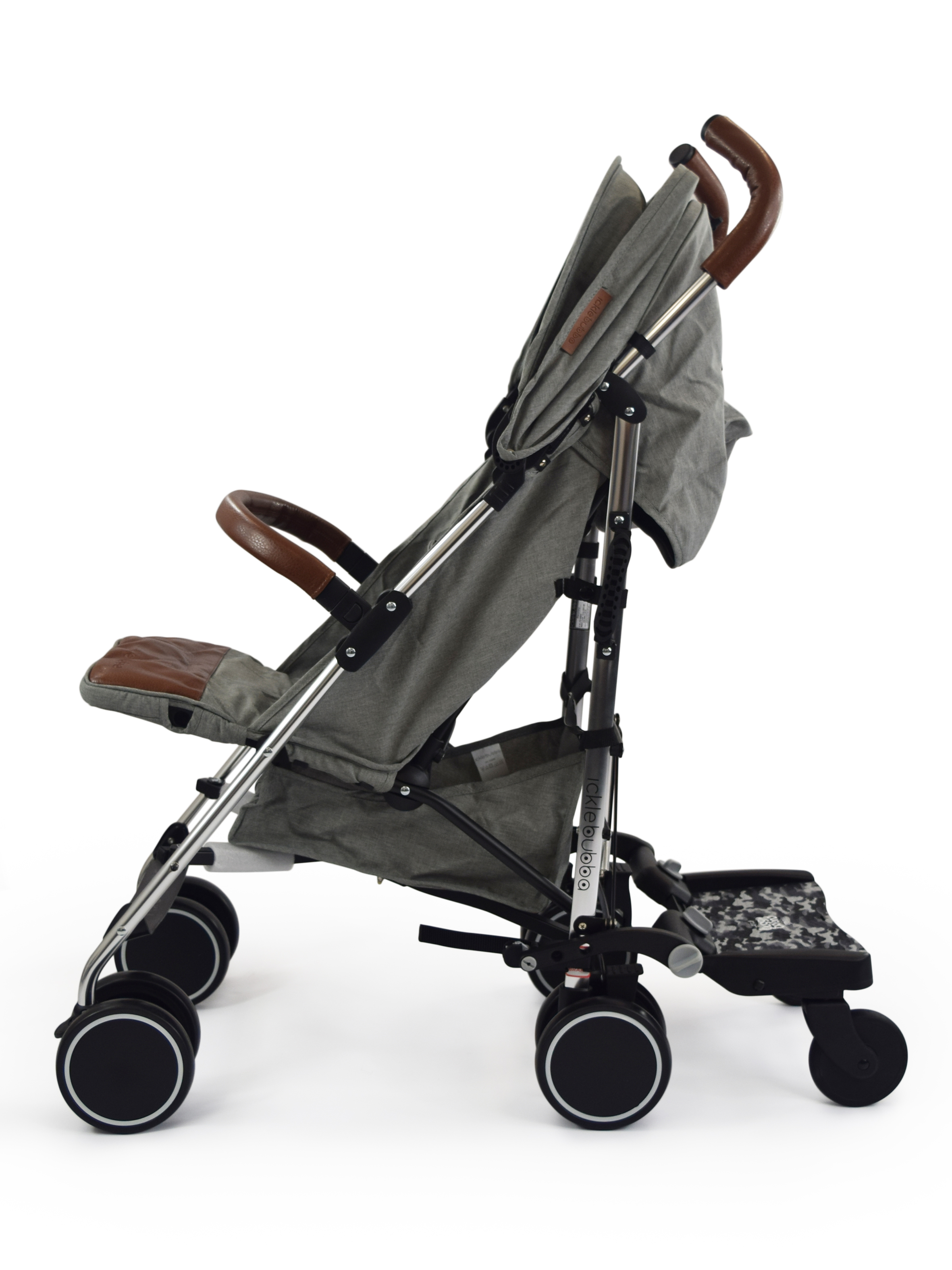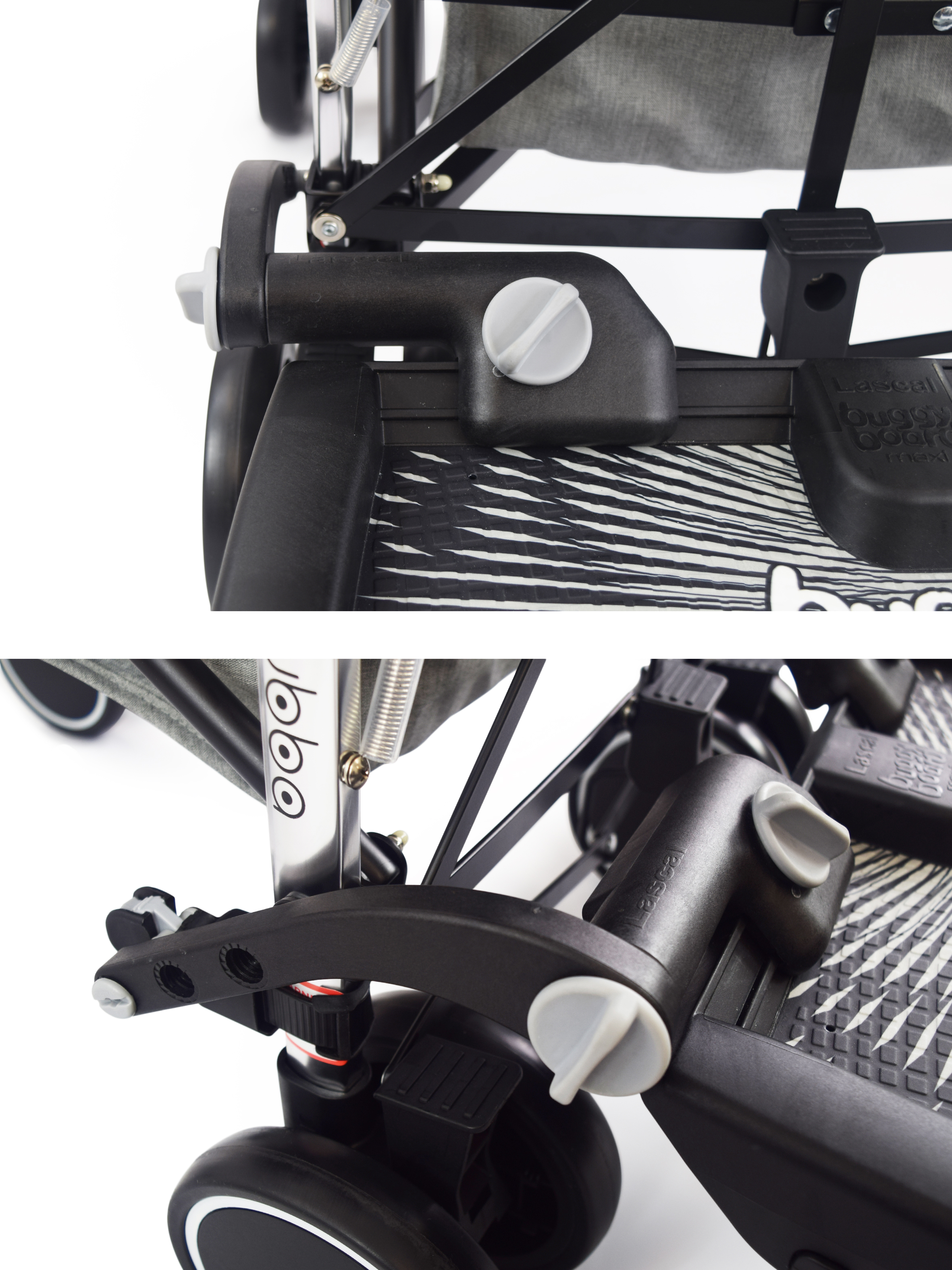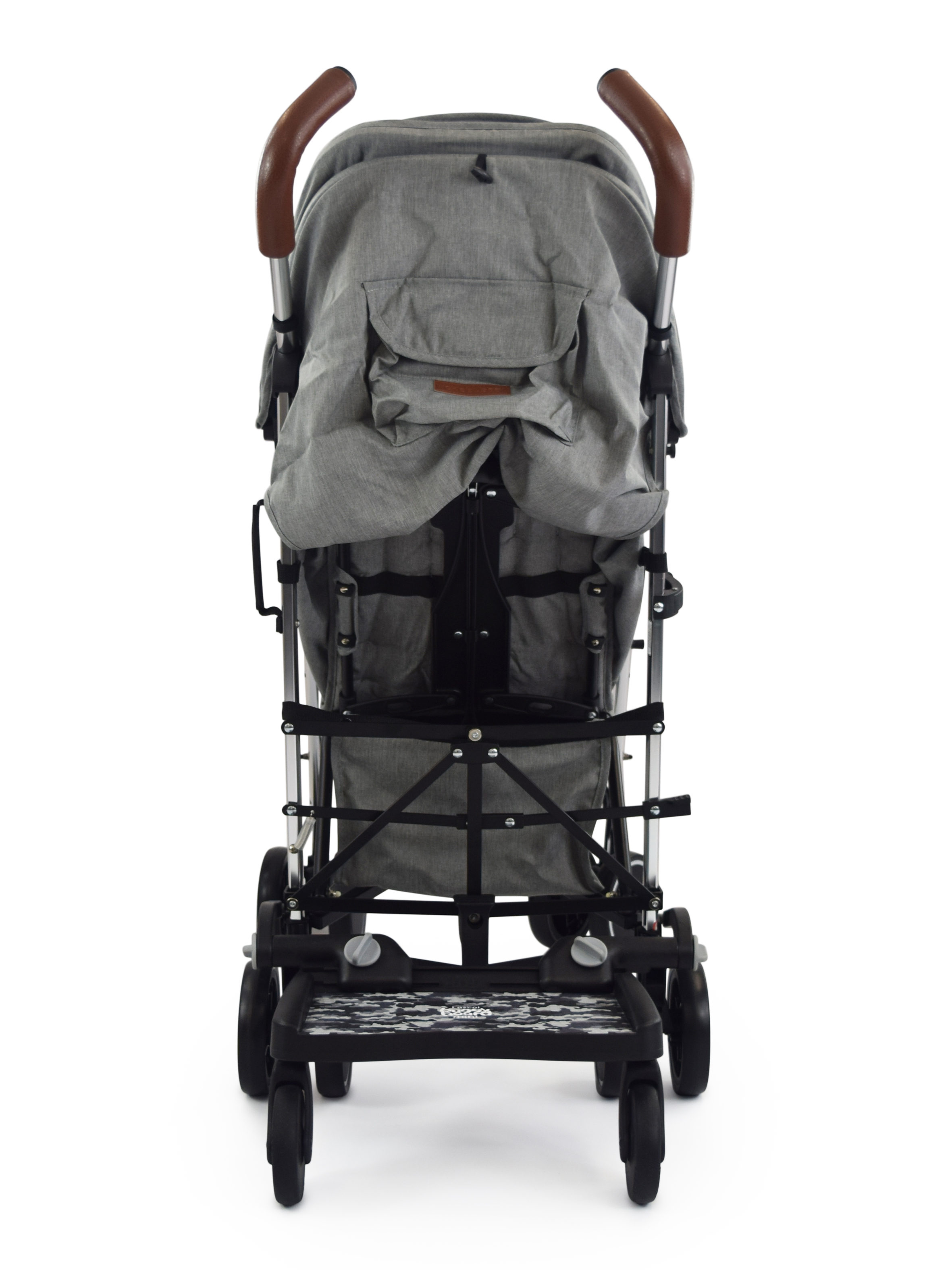 Please note, this website and product imagery is designed to show you the wide variety of applications and flexibility of the BuggyBoard on a range of pushchair models. It is not exhaustive and is regularly updated. The BuggyBoard has been designed with functionality in mind, so our illustrative examples are intended to show you that the BuggyBoard can be mounted successfully onto almost every pushchair model. It is important that any child using the BuggyBoard has enough space to stand comfortably. However, due to the number of combinations possible across pushchair brands (regarding positioning of carrycots, whether seats are forward/rear facing, the ability of the pushchair handle to slide out, accessories you may have attached etc.) we are unable to illustrate everything. Only you can recognise if your child has enough space to stand comfortably. Similarly, if you use a BuggyBoard Saddle, the seat accessory designed for use with the BuggyBoard Maxi, you need to be sure that your child has adequate space to sit/stand comfortably. They should always sit rear facing. Before each use, please show your child where they should hold onto the pushchair or Saddle to avoid any fingertraps that may be accessible at the back of your pushchair.