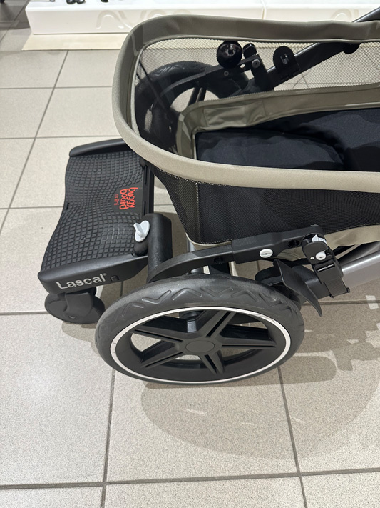 Please note, this website and product imagery is designed to show you the wide variety of applications and flexibility of the BuggyBoard on a range of pushchair models. It is not exhaustive and is regularly updated. The BuggyBoard has been designed with functionality in mind, so our illustrative examples are intended to show you that the BuggyBoard can be mounted successfully onto almost every pushchair model. It is important that any child using the BuggyBoard has enough space to stand comfortably. However, due to the number of combinations possible across pushchair brands (regarding positioning of carrycots, whether seats are forward/rear facing, the ability of the pushchair handle to slide out, accessories you may have attached etc.) we are unable to illustrate everything. Only you can recognise if your child has enough space to stand comfortably. Similarly, if you use a BuggyBoard Saddle, the seat accessory designed for use with the BuggyBoard Maxi, you need to be sure that your child has adequate space to sit/stand comfortably. They should always sit rear facing. Before each use, please show your child where they should hold onto the pushchair or Saddle to avoid any fingertraps that may be accessible at the back of your pushchair.
