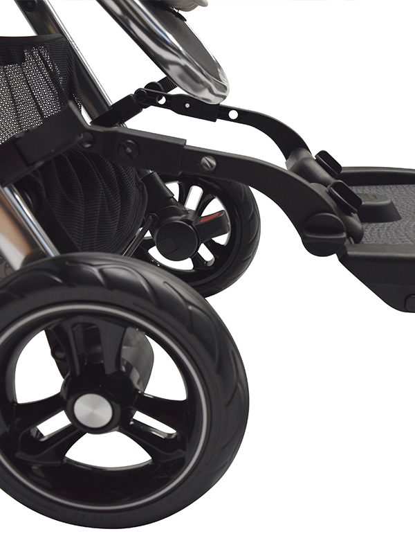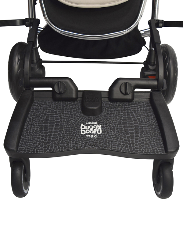 Please note, this website and product imagery is designed to show you the wide variety of applications and flexibility of the BuggyBoard on a range of pushchair models. It is not exhaustive and is regularly updated. The BuggyBoard has been designed with functionality in mind, so our illustrative examples are intended to show you that the BuggyBoard can be mounted successfully onto almost every pushchair model. It is important that any child using the BuggyBoard has enough space to stand comfortably. However, due to the number of combinations possible across pushchair brands (regarding positioning of carrycots, whether seats are forward/rear facing, the ability of the pushchair handle to slide out, accessories you may have attached etc.) we are unable to illustrate everything. Only you can recognise if your child has enough space to stand comfortably. Similarly, if you use a BuggyBoard Saddle, the seat accessory designed for use with the BuggyBoard Maxi, you need to be sure that your child has adequate space to sit/stand comfortably. They should always sit rear facing. Before each use, please show your child where they should hold onto the pushchair or Saddle to avoid any fingertraps that may be accessible at the back of your pushchair.