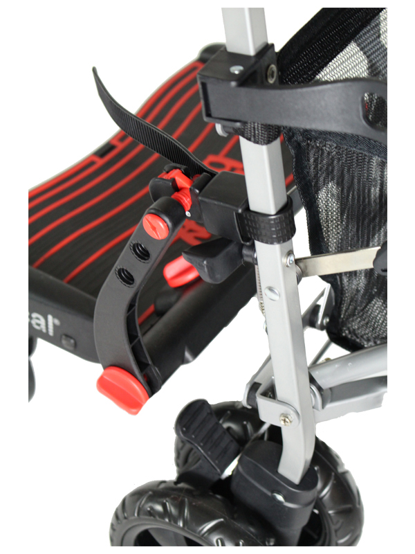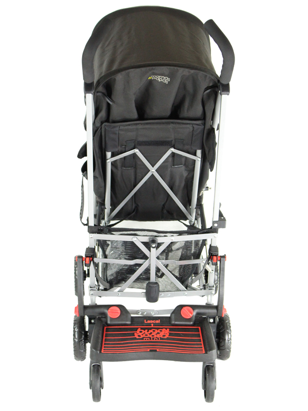 Please note, this website and product imagery is designed to show you the wide variety of applications and flexibility of the BuggyBoard on a range of pushchair models. It is not exhaustive and is regularly updated. The BuggyBoard has been designed with functionality in mind, so our illustrative examples are intended to show you that the BuggyBoard can be mounted successfully onto almost every pushchair model. It is important that any child using the BuggyBoard has enough space to stand comfortably. However, due to the number of combinations possible across pushchair brands (regarding positioning of carrycots, whether seats are forward/rear facing, the ability of the pushchair handle to slide out, accessories you may have attached etc.) we are unable to illustrate everything. Only you can recognise if your child has enough space to stand comfortably. Similarly, if you use a BuggyBoard Saddle, the seat accessory designed for use with the BuggyBoard Maxi, you need to be sure that your child has adequate space to sit/stand comfortably. They should always sit rear facing. Before each use, please show your child where they should hold onto the pushchair or Saddle to avoid any fingertraps that may be accessible at the back of your pushchair.