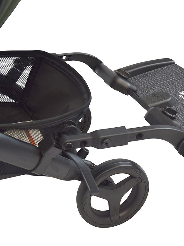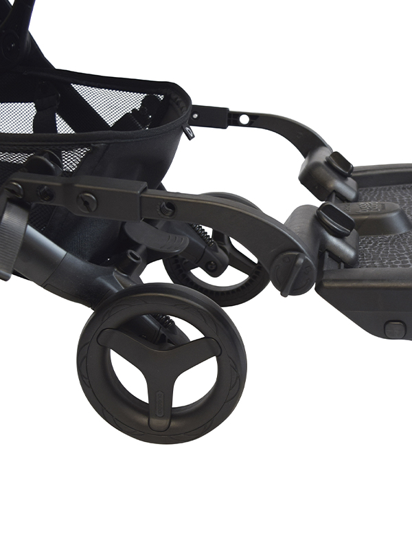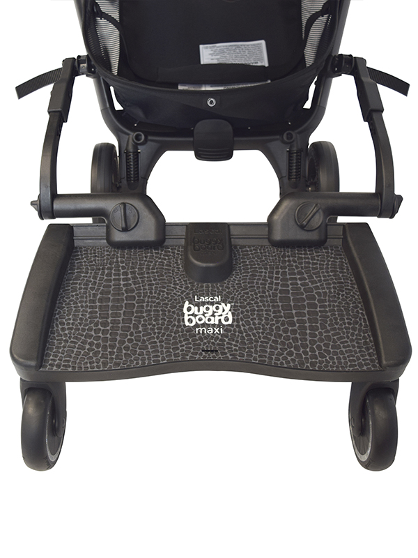 Please note, this website and product imagery is designed to show you the wide variety of applications and flexibility of the BuggyBoard on a range of pushchair models. It is not exhaustive and is regularly updated. The BuggyBoard has been designed with functionality in mind, so our illustrative examples are intended to show you that the BuggyBoard can be mounted successfully onto almost every pushchair model. It is important that any child using the BuggyBoard has enough space to stand comfortably. However, due to the number of combinations possible across pushchair brands (regarding positioning of carrycots, whether seats are forward/rear facing, the ability of the pushchair handle to slide out, accessories you may have attached etc.) we are unable to illustrate everything. Only you can recognise if your child has enough space to stand comfortably. Similarly, if you use a BuggyBoard Saddle, the seat accessory designed for use with the BuggyBoard Maxi, you need to be sure that your child has adequate space to sit/stand comfortably. They should always sit rear facing. Before each use, please show your child where they should hold onto the pushchair or Saddle to avoid any fingertraps that may be accessible at the back of your pushchair.