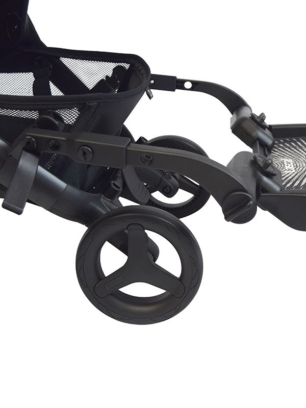 Please note, this website and product imagery is designed to show you the wide variety of applications and flexibility of the BuggyBoard on a range of pushchair models. It is not exhaustive and is regularly updated. The BuggyBoard has been designed with functionality in mind, so our illustrative examples are intended to show you that the BuggyBoard can be mounted successfully onto almost every pushchair model. It is important that any child using the BuggyBoard has enough space to stand comfortably. However, due to the number of combinations possible across pushchair brands (regarding positioning of carrycots, whether seats are forward/rear facing, the ability of the pushchair handle to slide out, accessories you may have attached etc.) we are unable to illustrate everything. Only you can recognise if your child has enough space to stand comfortably. Similarly, if you use a BuggyBoard Saddle, the seat accessory designed for use with the BuggyBoard Maxi, you need to be sure that your child has adequate space to sit/stand comfortably. They should always sit rear facing. Before each use, please show your child where they should hold onto the pushchair or Saddle to avoid any fingertraps that may be accessible at the back of your pushchair.