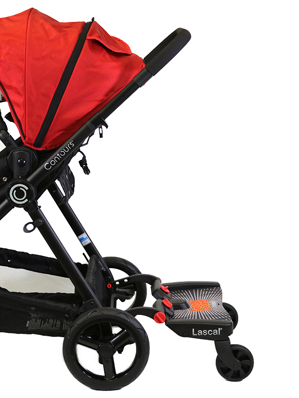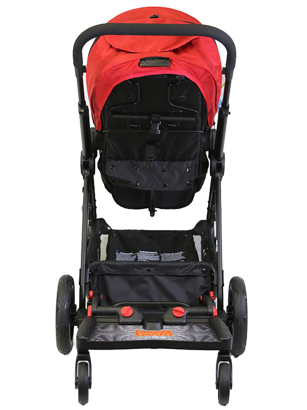 Please note, this website and product imagery is designed to show you the wide variety of applications and flexibility of the BuggyBoard on a range of pushchair models. It is not exhaustive and is regularly updated. The BuggyBoard has been designed with functionality in mind, so our illustrative examples are intended to show you that the BuggyBoard can be mounted successfully onto almost every pushchair model. It is important that any child using the BuggyBoard has enough space to stand comfortably. However, due to the number of combinations possible across pushchair brands (regarding positioning of carrycots, whether seats are forward/rear facing, the ability of the pushchair handle to slide out, accessories you may have attached etc.) we are unable to illustrate everything. Only you can recognise if your child has enough space to stand comfortably. Similarly, if you use a BuggyBoard Saddle, the seat accessory designed for use with the BuggyBoard Maxi, you need to be sure that your child has adequate space to sit/stand comfortably. They should always sit rear facing. Before each use, please show your child where they should hold onto the pushchair or Saddle to avoid any fingertraps that may be accessible at the back of your pushchair.
