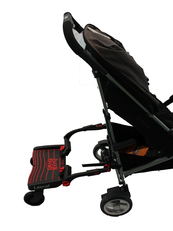 Please note, this website and product imagery is designed to show you the wide variety of applications and flexibility of the BuggyBoard on a range of pushchair models. It is not exhaustive and is regularly updated. The BuggyBoard has been designed with functionality in mind, so our illustrative examples are intended to show you that the BuggyBoard can be mounted successfully onto almost every pushchair model. It is important that any child using the BuggyBoard has enough space to stand comfortably. However, due to the number of combinations possible across pushchair brands (regarding positioning of carrycots, whether seats are forward/rear facing, the ability of the pushchair handle to slide out, accessories you may have attached etc.) we are unable to illustrate everything. Only you can recognise if your child has enough space to stand comfortably. Similarly, if you use a BuggyBoard Saddle, the seat accessory designed for use with the BuggyBoard Maxi, you need to be sure that your child has adequate space to sit/stand comfortably. They should always sit rear facing. Before each use, please show your child where they should hold onto the pushchair or Saddle to avoid any fingertraps that may be accessible at the back of your pushchair.