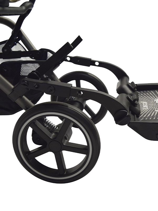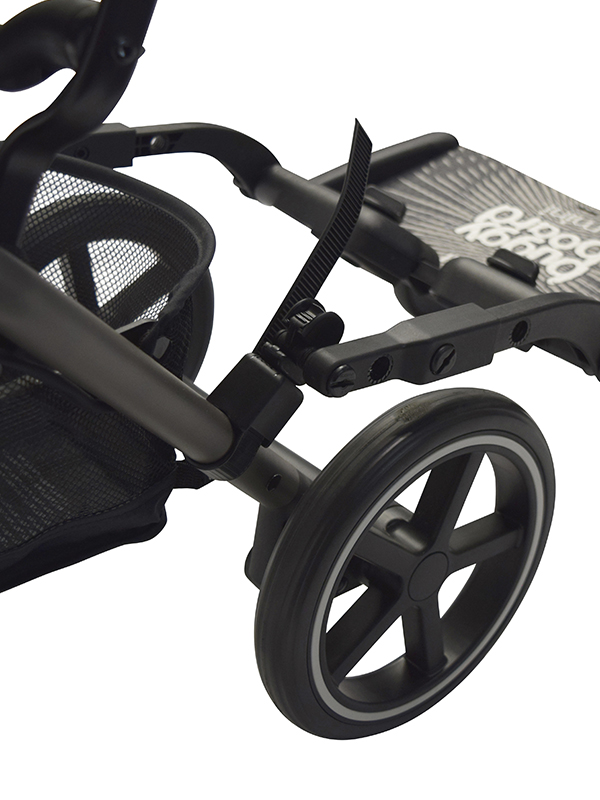 Please note, this website and product imagery is designed to show you the wide variety of applications and flexibility of the BuggyBoard on a range of pushchair models. It is not exhaustive and is regularly updated. The BuggyBoard has been designed with functionality in mind, so our illustrative examples are intended to show you that the BuggyBoard can be mounted successfully onto almost every pushchair model. It is important that any child using the BuggyBoard has enough space to stand comfortably. However, due to the number of combinations possible across pushchair brands (regarding positioning of carrycots, whether seats are forward/rear facing, the ability of the pushchair handle to slide out, accessories you may have attached etc.) we are unable to illustrate everything. Only you can recognise if your child has enough space to stand comfortably. Similarly, if you use a BuggyBoard Saddle, the seat accessory designed for use with the BuggyBoard Maxi, you need to be sure that your child has adequate space to sit/stand comfortably. They should always sit rear facing. Before each use, please show your child where they should hold onto the pushchair or Saddle to avoid any fingertraps that may be accessible at the back of your pushchair.