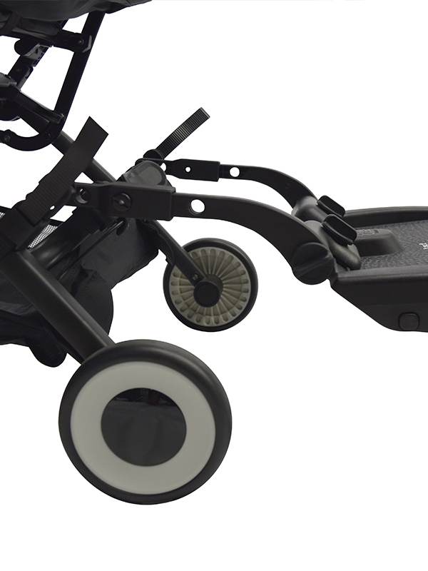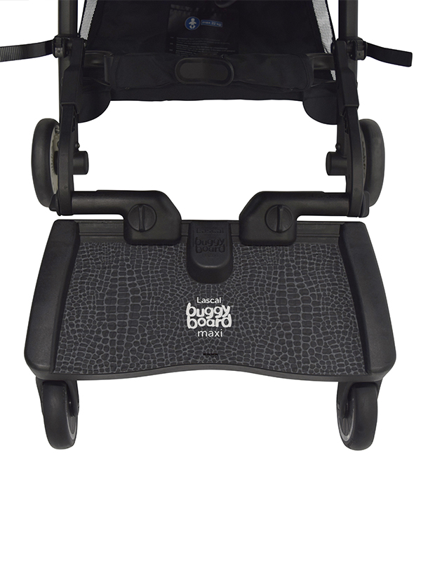 Please note, this website and product imagery is designed to show you the wide variety of applications and flexibility of the BuggyBoard on a range of pushchair models. It is not exhaustive and is regularly updated. The BuggyBoard has been designed with functionality in mind, so our illustrative examples are intended to show you that the BuggyBoard can be mounted successfully onto almost every pushchair model. It is important that any child using the BuggyBoard has enough space to stand comfortably. However, due to the number of combinations possible across pushchair brands (regarding positioning of carrycots, whether seats are forward/rear facing, the ability of the pushchair handle to slide out, accessories you may have attached etc.) we are unable to illustrate everything. Only you can recognise if your child has enough space to stand comfortably. Similarly, if you use a BuggyBoard Saddle, the seat accessory designed for use with the BuggyBoard Maxi, you need to be sure that your child has adequate space to sit/stand comfortably. They should always sit rear facing. Before each use, please show your child where they should hold onto the pushchair or Saddle to avoid any fingertraps that may be accessible at the back of your pushchair.