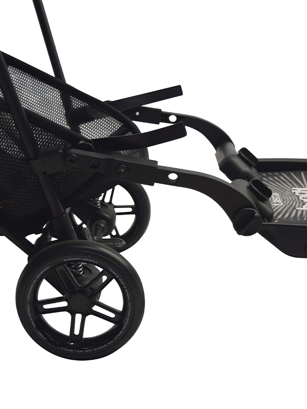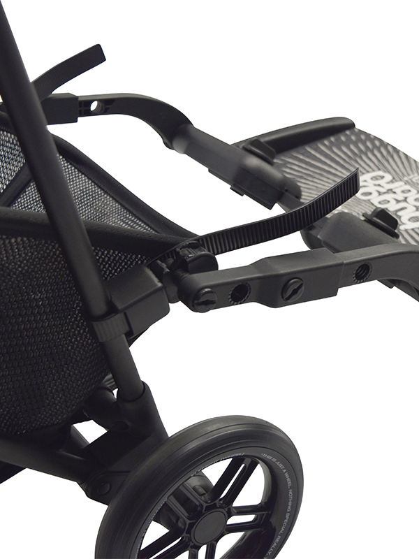 Please note, this website and product imagery is designed to show you the wide variety of applications and flexibility of the BuggyBoard on a range of pushchair models. It is not exhaustive and is regularly updated. The BuggyBoard has been designed with functionality in mind, so our illustrative examples are intended to show you that the BuggyBoard can be mounted successfully onto almost every pushchair model. It is important that any child using the BuggyBoard has enough space to stand comfortably. However, due to the number of combinations possible across pushchair brands (regarding positioning of carrycots, whether seats are forward/rear facing, the ability of the pushchair handle to slide out, accessories you may have attached etc.) we are unable to illustrate everything. Only you can recognise if your child has enough space to stand comfortably. Similarly, if you use a BuggyBoard Saddle, the seat accessory designed for use with the BuggyBoard Maxi, you need to be sure that your child has adequate space to sit/stand comfortably. They should always sit rear facing. Before each use, please show your child where they should hold onto the pushchair or Saddle to avoid any fingertraps that may be accessible at the back of your pushchair.