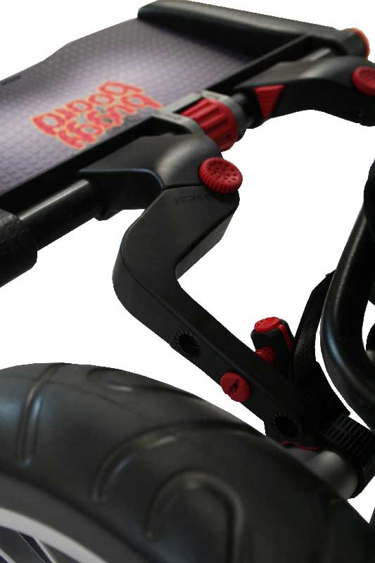 The BuggyBoard can be hooked up using the lift ‘n’ store system when not in use