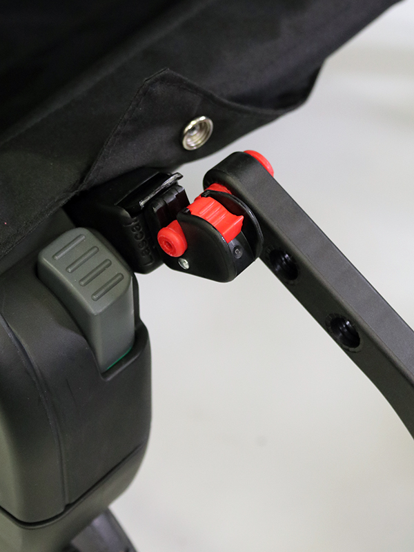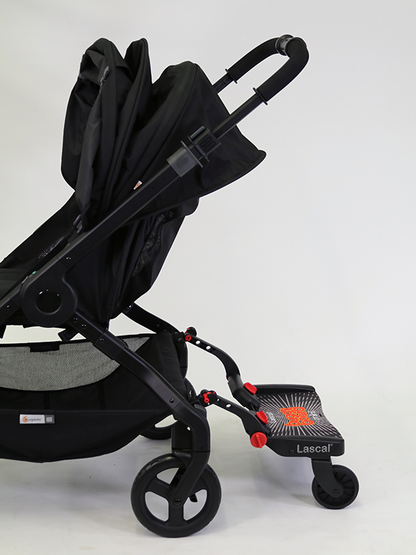 The BuggyBoard can be hooked up using the lift ‘n’ store system when not in use