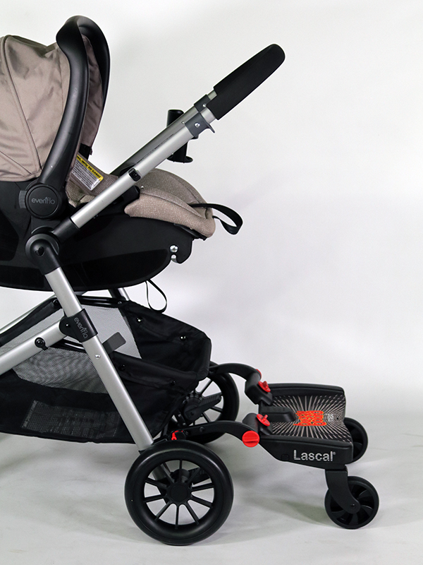 The BuggyBoard can be hooked up using the lift ‘n’ store system when not in use