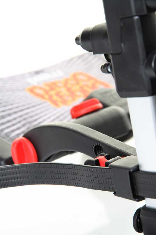 The BuggyBoard can be hooked up using the lift ‘n’ store system when not in use