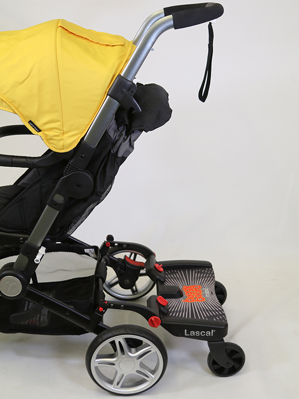 Please note, this website and product imagery is designed to show you the wide variety of applications and flexibility of the BuggyBoard on a range of pushchair models. It is not exhaustive and is regularly updated. The BuggyBoard has been designed with functionality in mind, so our illustrative examples are intended to show you that the BuggyBoard can be mounted successfully onto almost every pushchair model. It is important that any child using the BuggyBoard has enough space to stand comfortably. However, due to the number of combinations possible across pushchair brands (regarding positioning of carrycots, whether seats are forward/rear facing, the ability of the pushchair handle to slide out, accessories you may have attached etc.) we are unable to illustrate everything. Only you can recognise if your child has enough space to stand comfortably. Similarly, if you use a BuggyBoard Saddle, the seat accessory designed for use with the BuggyBoard Maxi, you need to be sure that your child has adequate space to sit/stand comfortably. They should always sit rear facing. Before each use, please show your child where they should hold onto the pushchair or Saddle to avoid any fingertraps that may be accessible at the back of your pushchair.