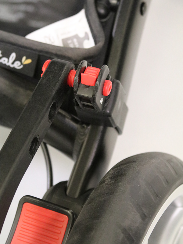 The BuggyBoard can be hooked up using the lift ‘n’ store system when not in use