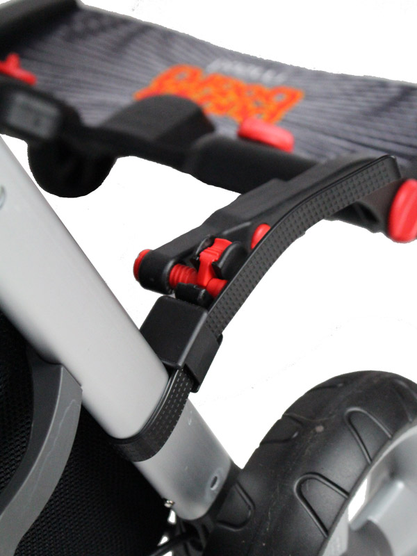The BuggyBoard can be hooked up using the lift ‘n’ store system when not in use
