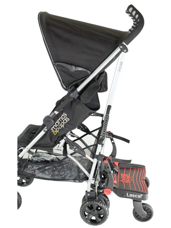 Please note, this website and product imagery is designed to show you the wide variety of applications and flexibility of the BuggyBoard on a range of pushchair models. It is not exhaustive and is regularly updated. The BuggyBoard has been designed with functionality in mind, so our illustrative examples are intended to show you that the BuggyBoard can be mounted successfully onto almost every pushchair model. It is important that any child using the BuggyBoard has enough space to stand comfortably. However, due to the number of combinations possible across pushchair brands (regarding positioning of carrycots, whether seats are forward/rear facing, the ability of the pushchair handle to slide out, accessories you may have attached etc.) we are unable to illustrate everything. Only you can recognise if your child has enough space to stand comfortably. Similarly, if you use a BuggyBoard Saddle, the seat accessory designed for use with the BuggyBoard Maxi, you need to be sure that your child has adequate space to sit/stand comfortably. They should always sit rear facing. Before each use, please show your child where they should hold onto the pushchair or Saddle to avoid any fingertraps that may be accessible at the back of your pushchair.