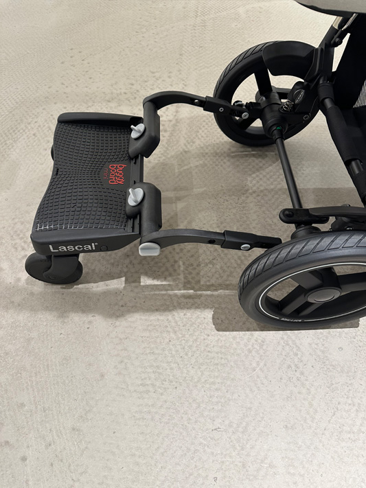 The BuggyBoard can be hooked up using the lift ‘n’ store system when not in use