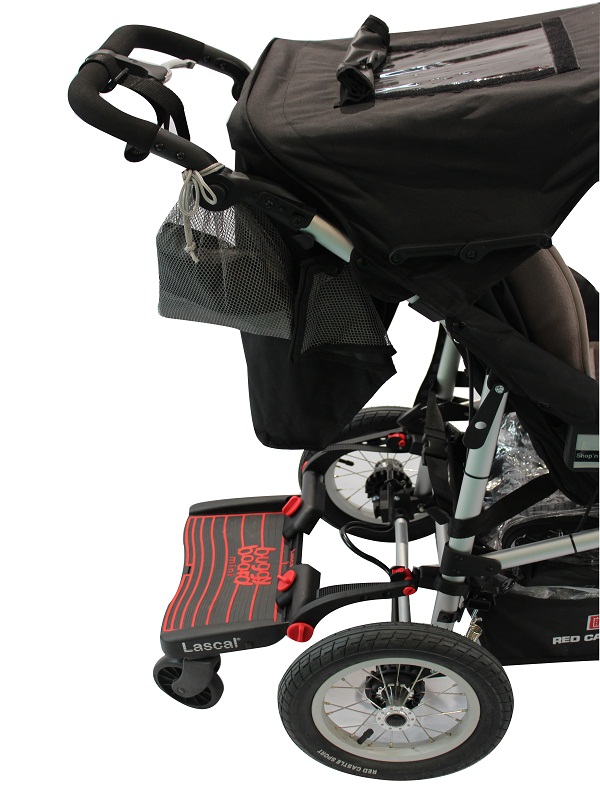 The BuggyBoard can be hooked up using the lift ‘n’ store system when not in use